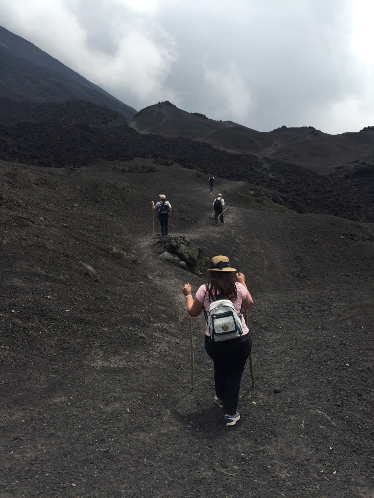 •Una vez alcanzamos el punto máximo permitido del volcán (1 hora y 30 minutos aproximados de caminata) podrás contemplar de frente él gran volcán de Pacaya con sus más de 2,500 metros de altura.